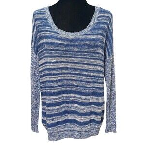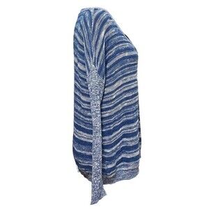 Eileen Fisher Linen Blend Sweater Blue White Stripe Small Organic Coastal