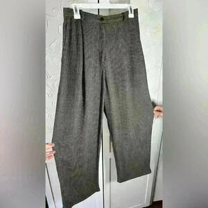 Eileen Fisher Linen Blend Wide Leg Trouser Zip fly Partial Elastic waist Sz S