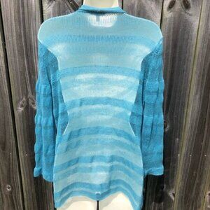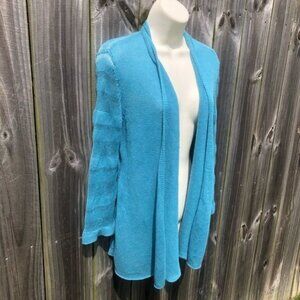 Eileen Fisher Linen Blue Cardigan XS Top Sweater Striped Waterfall Open Ribbed