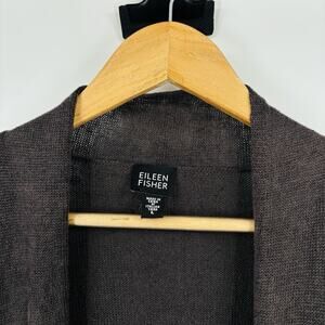 Eileen Fisher Linen Cardigan Large Brown Draped Open Front Coastal Minimalist