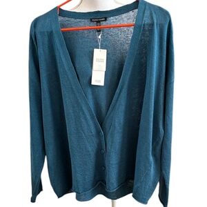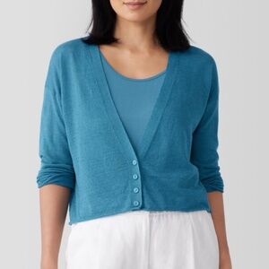 Eileen Fisher Linen Cotton Cropped Cardigan In teal (Cascade). Size 1X. New with tags.