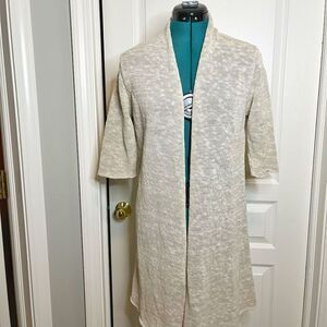Eileen Fisher Linen Cotton Knit 3/4 Sleeve Open Front Duster Cardigan Sweater