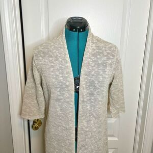 Eileen Fisher Linen Cotton Knit Blend 3/4 Sleeve Open Front Duster Cardigan Sweater