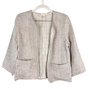 Eileen Fisher Linen Cotton Open Front 3/4 Sleeve Blazer Sz XXS Light Breathable