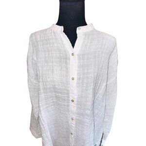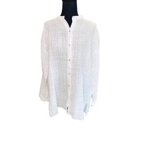 Eileen Fisher Linen Cotton Sheer Check Mandarin Collar Shirt Waffle Minimalist