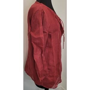 Eileen Fisher Linen Gauze Boxy Tie Front Top & Camisole Set M/S Coral Red
