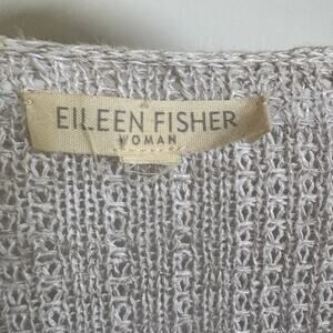 Eileen Fisher Linen Gray Cardigan Sweater Lightweight Quiet Luxury Open Front