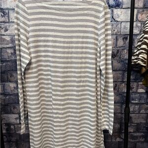Eileen Fisher Linen Gray White Striped Long Sleeve Dress Tunic sz Petite XL