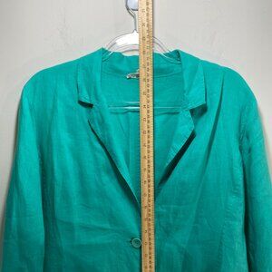 Eileen Fisher Linen Kelly Green Blazer Women’s L Resortwear Minimalist Old Money