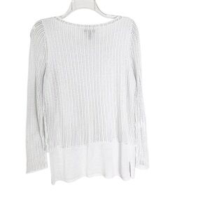 Eileen Fisher White Linen Knit Mesh Overlay Tiered Layered Sweater Top