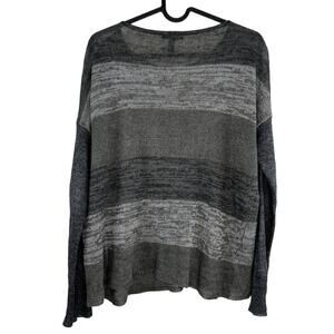 Eileen Fisher Linen Open Knit Grey Striped Sweater Size XS Fisherman Lagenlook
