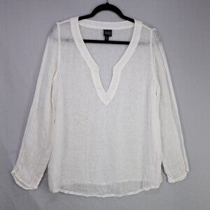 Eileen Fisher Linen Shirt Gauze Long Sleeve Size Small Sheer Coastal Grandma Lux