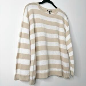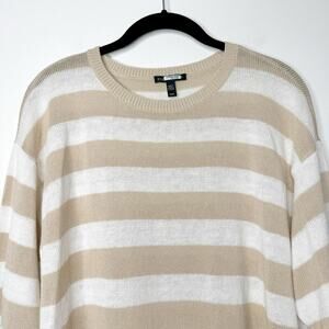 Eileen Fisher Linen Silk Blend Striped Round Neck Box Top Sweater Size Medium