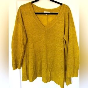 Eileen Fisher Linen V-Neck Quarter Sleeve Coastal Sweater / Medium