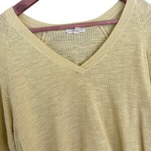 Eileen Fisher Linen Waffle Sweater XL V Neck Yellow Organic Boho Lagenlook