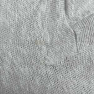 There’s a subtle mark on the front where cardigan opens/folds. Makeup mark on label and collar of cardigan and slight mark on the seam of sleeve. See pics.