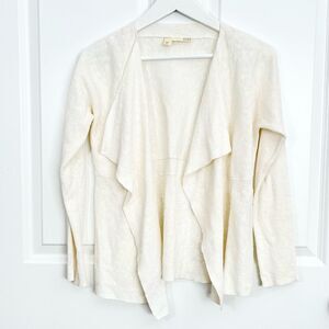 Eileen Fisher Linen White and Cream Open Front Cardigan