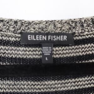 Eileen Fisher Linen Wool Pullover Sweater Sz L Beige Black Striped Washable