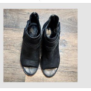 Eileen Fisher List Black Leather Peep Toe Ankle Booties Women's size 7M.