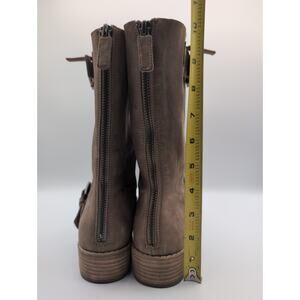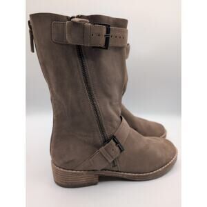 Eileen Fisher Log Two Buckle Mid Shaft Oatmeal Suede Boots Size 6.5