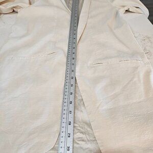 This Eileen Fisher ivory bone jacket offers a polished and professional look. Crafted from Italian fabric, its breathable silk blend lining and open front design ensure comfort and sophistication.