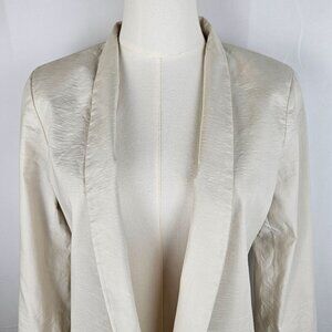 Eileen Fisher Long Bone Jacket Open Front Italian Fabric Size 10 Silk Blend