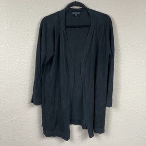 Eileen Fisher Long Cardigan Sweater Black Lightweight Layering Sz L