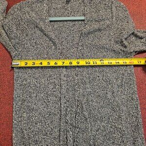 Eileen Fisher Long Duster Cardigan Sz PM Marled Gray Boho Relaxed Open Beach