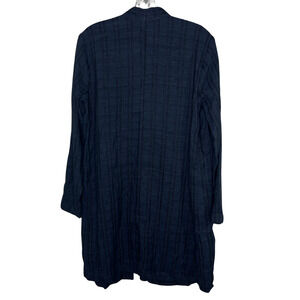 Eileen Fisher Long Jacket Sz XXS Blue Textured Organic Linen Stripe Quite Luxury