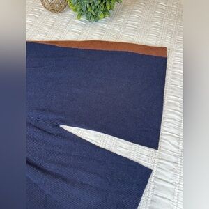 Eileen Fisher Long Open Front Sweater Cardigan in Navy and Brown Size Medium