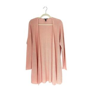 Eileen Fisher Long Organic Linen & Cotton Cardigan Pink Sz M Lagenlook Coastal