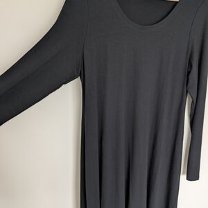 Eileen Fisher Long Sleeve Midi Dress Medium Minimalist Lagenlook Curved Hem