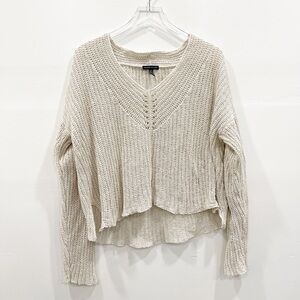 Long Sleeve V-Neck Textured Tape-Yarn Sweater L