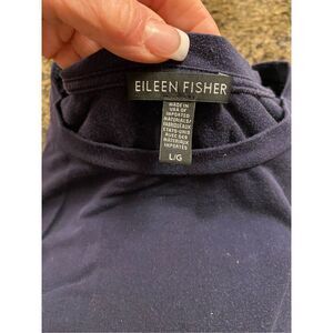 Classic Eileen Fisher T-Shirt, size L. Short sleeves, crew neck. Good preowned condition. Navy Blue. Machine washable.