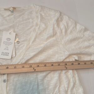 Eileen Fisher Long V Neck Linen Cotton Slub Short Sleeve Button Down Sweater NWT