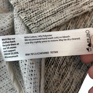 Classic EF styling. Loose, easy, comfortable able to transition between seasons depending on layers. Wear with pants or skirts. Cotton blend. Handwashable. Unlined. Snaps up the front.