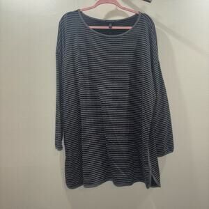 Eileen Fisher Loungewear Set- Striped Tencel Blend Gray and Black Top & Pants