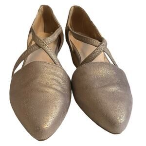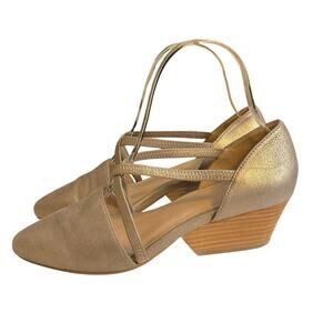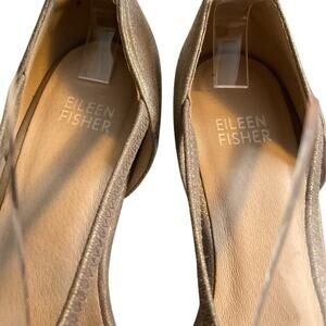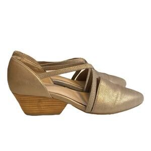 Eileen Fisher Low Heel Shoes Sz 7 Poet Gold Shimmer Leather Crisscross Strappy