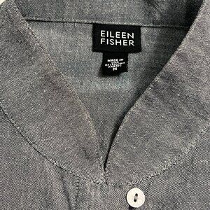 Eileen Fisher M Gray Button Front Shirt Jacket Linen Rayon Blend USA Long Sleeve