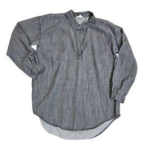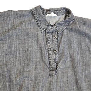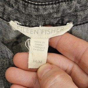 Eileen Fisher M Gray Chambray Denim Jean Popover Blouse Tunic Boho Tencel