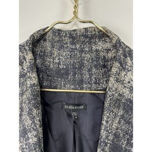 Eileen Fisher M Illusion Coat Jacquard Jacket Navy Blue Metallic Shimmer Pockets
