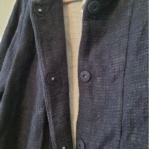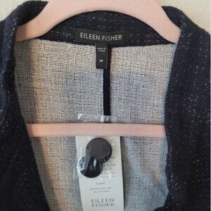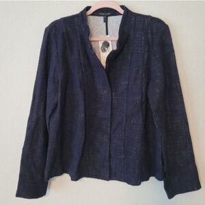 Eileen Fisher Mandarin Collar Cropped Stitch Cotton Linen Tweed Jacket Medium