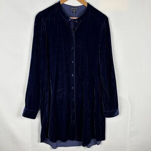 Eileen Fisher Mandarin Collar Velvet Tunic Button Shirt Sz M Navy Holiday Party