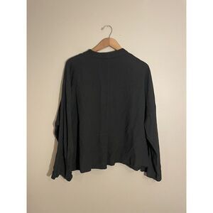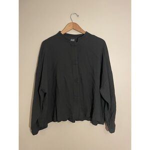 Eileen Fisher Mandarin Top Women’s Large Hidden Buttons Textured Boxy J699 Black