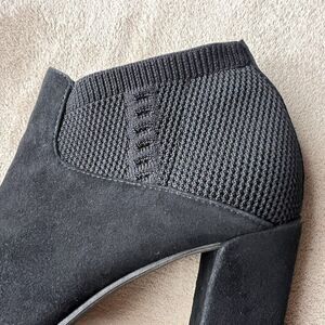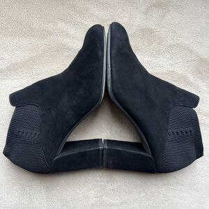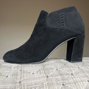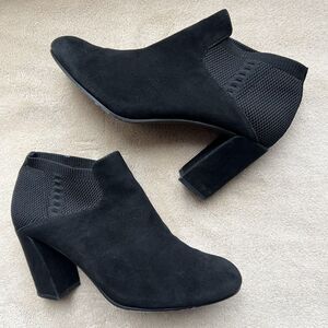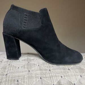 Eileen Fisher Marcy Black Suede Ankle Bootie Stretch Knit Minimalist Women’s 8