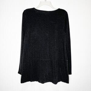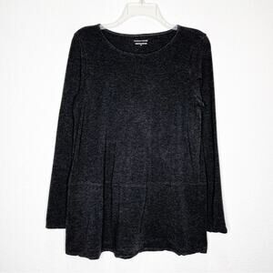 Eileen Fisher Marled Gray Scoop Neck Tunic Long Sleeve Dark Gray Charcoal Small