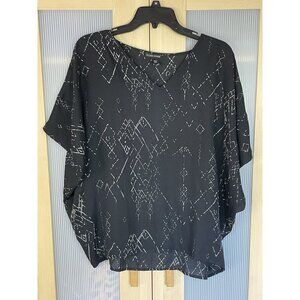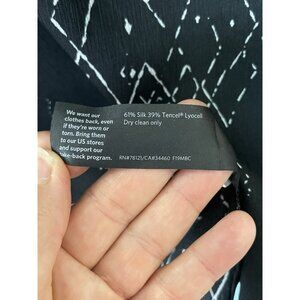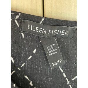 Eileen Fisher Marrakesh Silk Top XS V Neck Black Art Casual Beach Boho Blouse