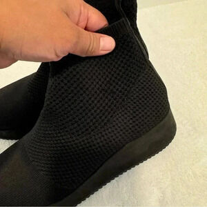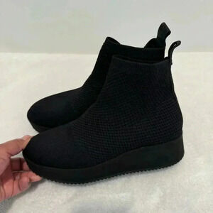 Eileen Fisher Mars Ankle Bootie 6 Black Stretch Knit Wedge Heel Minimali…