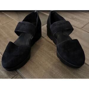 Eileen Fisher Mary Jane Wedge BLACK Suede Marlow Shoes SZ 6