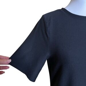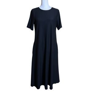 Eileen Fisher Maxi Dress Size XS Black Minimalist Cap Sleeve Crewneck Pockets